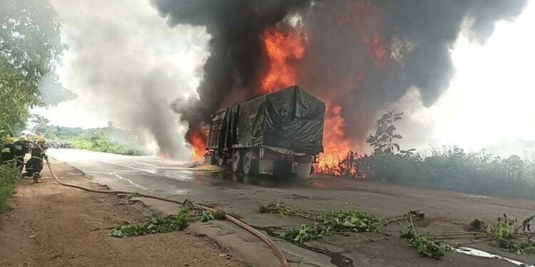 “On arrival, it was two trucks, one loaded with grains (maize) and other with unidentified chemicals collided with each other, engulfed by fire.