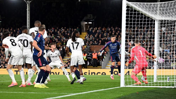 Arsenal narrowly edged out Fulham, winning 1-0 at Craven Cottage to move atop the English Premier League table.