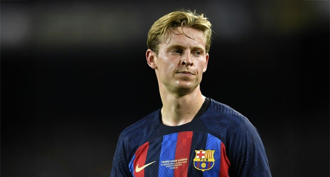 Barcelona announced on Thursday that their Netherlands midfielder Frenkie de Jong will be out for up to six weeks with a leg issue.