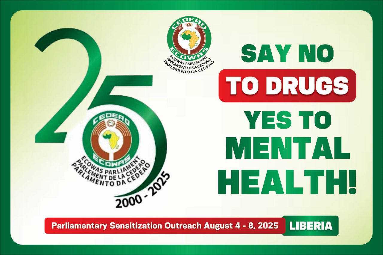 The Parliament of Economic Community of West African States (ECOWAS Parliament) is organising an awareness campaign on drug abuse and mental health from 4 to 8 August 2025, in Monrovia, Liberia.
