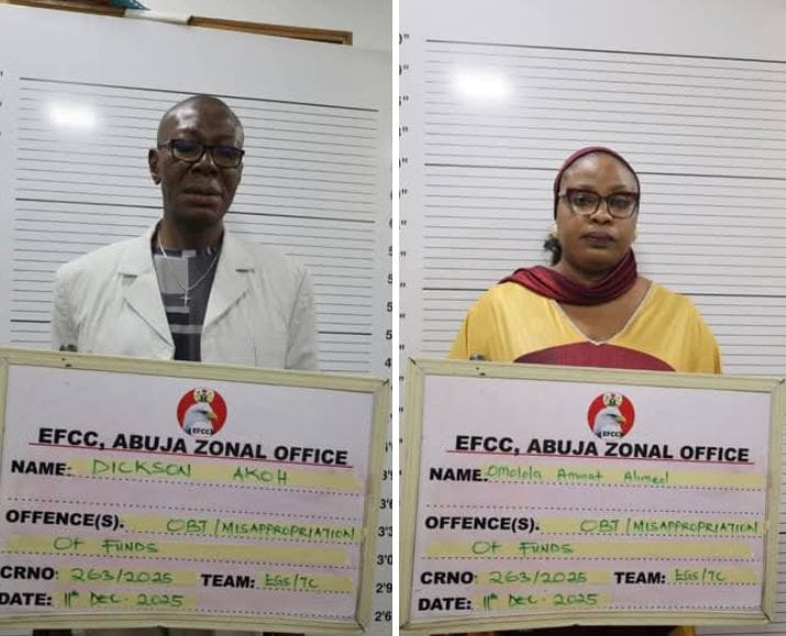 The Abuja Zonal Directorate of the Economic and Financial Crimes Commission, EFCC, on Thursday 11, December, 2025, arraigned the Commandant of the Nigeria Peace Corps, Dickson Akon and the Director of Finance of the Corps, Omolala Aminat Ahmed, before Justice H. B. Yusuf of the Federal Capital Territory, FCT High Court, Abuja.