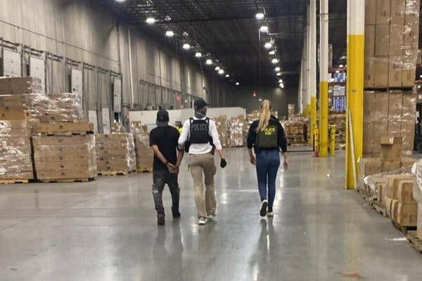 In New Jersey, video shared on social media showed a man wearing a vest marked HSI — Homeland Security Investigations — ordering construction crews at a warehouse site to stop all activity.