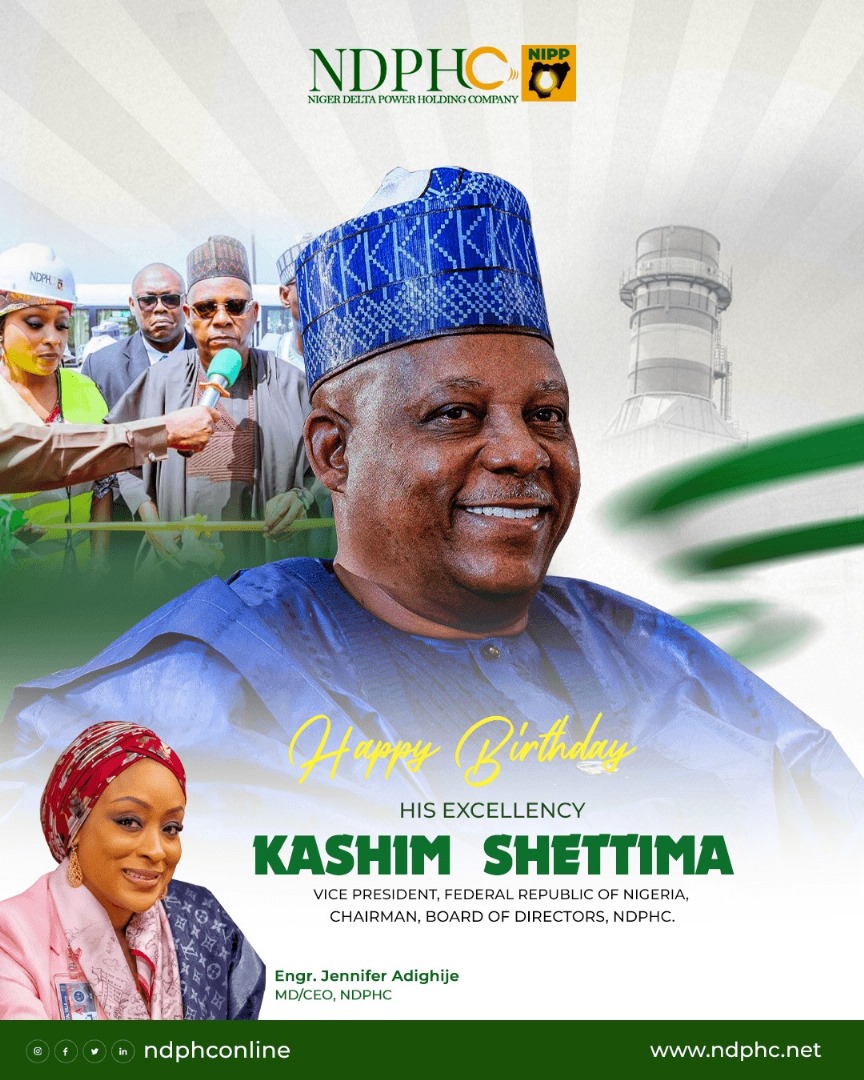 Niger Delta Power Holding Company (NDPHC) has Felicitated Nigeria’s Vice President (VP) Kashim Shettima on his 59th birth anniversary.