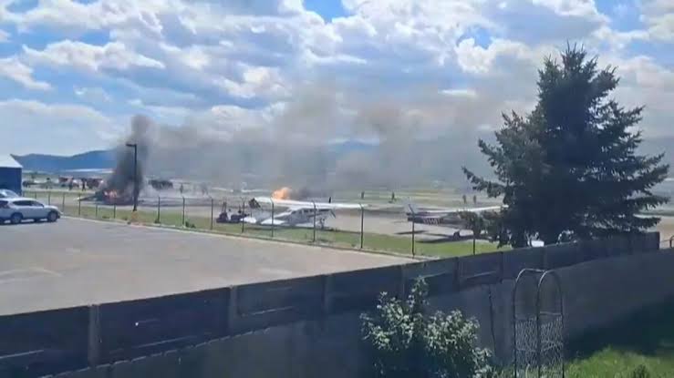 The impact ignited fires on several planes, sending thick smoke into the air and prompting a rapid emergency response from local fire crews.
