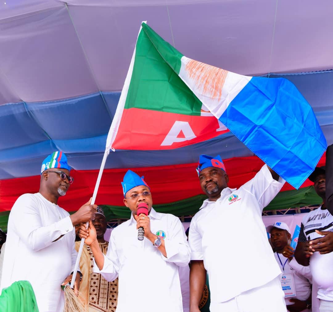 High point of the occasion was the presentation of APC flags to the chairmanship candidates from the 21 local government areas in the state by Governor Ahmed Usman Ododo.